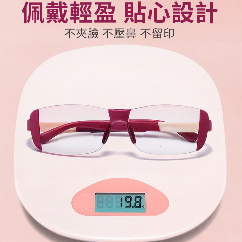 高清晰防藍光鏡片,耐腐蝕耐刮耐磨 防藍光防輻射防紫外線防疲勞,看遠看近都非常清楚 100%防紫外線,3-5年之內不會發黃 不易折斷不壓鼻子沒有螺絲 磁石加速血液循環,降低疲勞感
